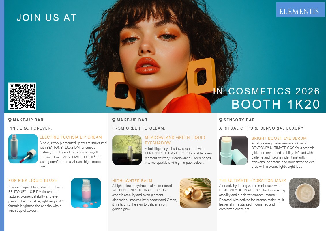 From 14 to 16 April at Paris Expo Porte de Versailles, we’ll be showcasing the newest highlights from Elementis Personal Care including three upcoming product launches designed to elevate innovation, performance and sensoriality in next‑generation formulations.